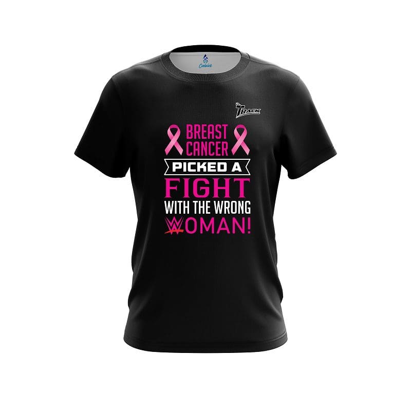 Stay 40% cooler with CoolWick. Our Track Breast Cancer Smack Down CoolWick Bowling Jerseys are made of two different fabrics with the back being our CoolWick technology fabric that helps wick moisture away and helps air flow more easily through the fibers.