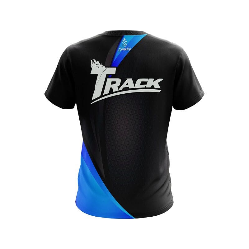 Stay 40% cooler with CoolWick. Our Track Carbon Blue Swirl CoolWick Bowling Jerseys are made of two different fabrics with the back being our CoolWick technology fabric that helps wick moisture away and helps air flow more easily through the fibers.