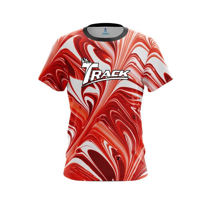 Stay 40% cooler with CoolWick. Our Track Deep Red And White Liquid Swirls CoolWick Bowling Jerseys are made of two different fabrics with the back being our CoolWick technology fabric that helps wick moisture away and helps air flow more easily through the fibers.