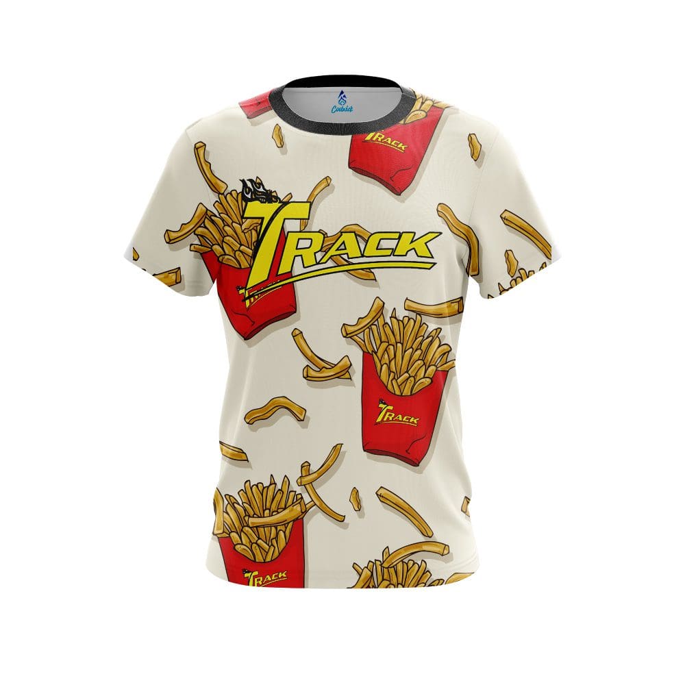 Stay 40% cooler with CoolWick. Our Track French Fries White CoolWick Bowling Jerseys are made of two different fabrics. The back being our CoolWick technology fabric that helps wick moisture away and helps air flow more easily through the fibers.