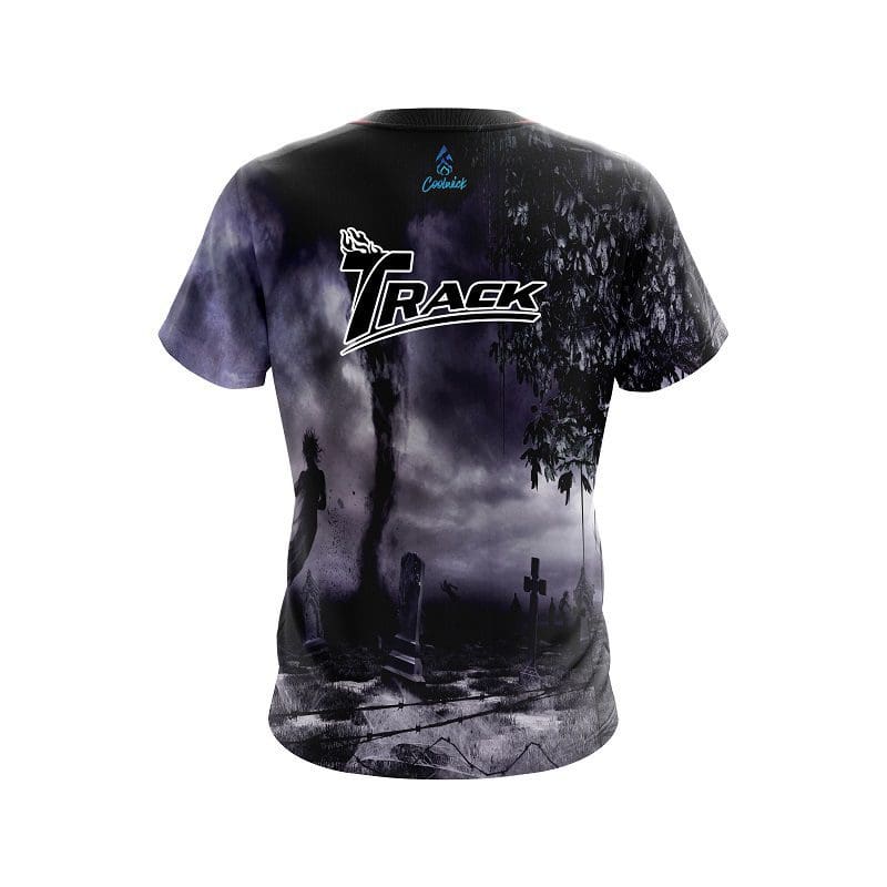 Stay 40% cooler with CoolWick. Our Track Ghost Cemetery CoolWick Bowling Jerseys are made of two different fabrics with the back being our CoolWick technology fabric that helps wick moisture away and helps air flow more easily through the fibers.