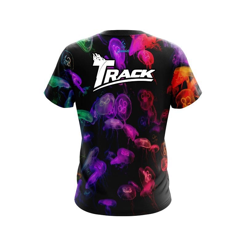 Stay 40% cooler with CoolWick. Our Track Glowing Jellyfish CoolWick Bowling Jerseys are made of two different fabrics with the back being our CoolWick technology fabric that helps wick moisture away and helps air flow more easily through the fibers.