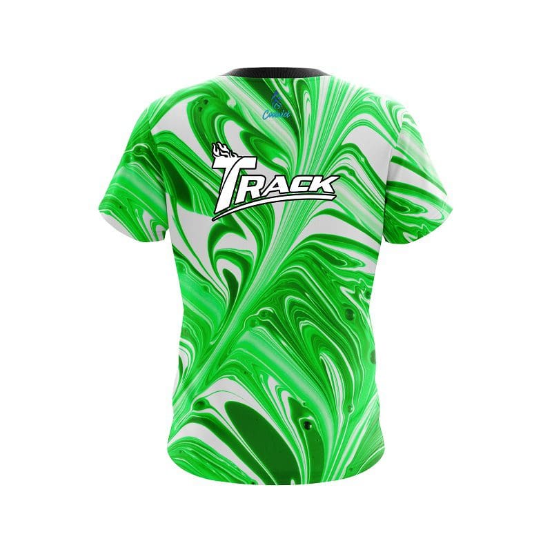 Stay 40% cooler with CoolWick. Our Track Green And White Liquid Swirls CoolWick Bowling Jerseys are made of two different fabrics with the back being our CoolWick technology fabric that helps wick moisture away and helps air flow more easily through the fibers.
