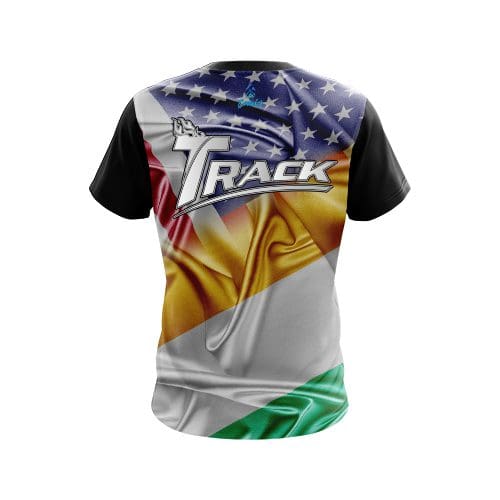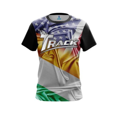 Stay 40% cooler with CoolWick. Our Track Ireland USA Flag Shirt CoolWick Bowling Jerseys are made of two different fabrics with the back being our CoolWick technology fabric that helps wick moisture away and helps air flow more easily through the fibers.