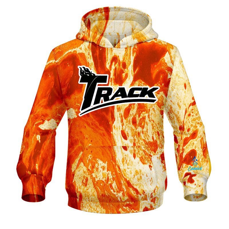 Designed, cut and sewn by hand, our Track Marble Orange CoolWick Bowling Hoodies are made to keep you warm and comfy with HD graphics and eye-catching style.