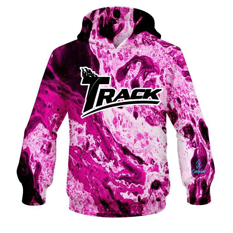 Designed, cut and sewn by hand, our Track Marble Pink CoolWick Bowling Hoodies are made to keep you warm and comfy with HD graphics and eye-catching style.