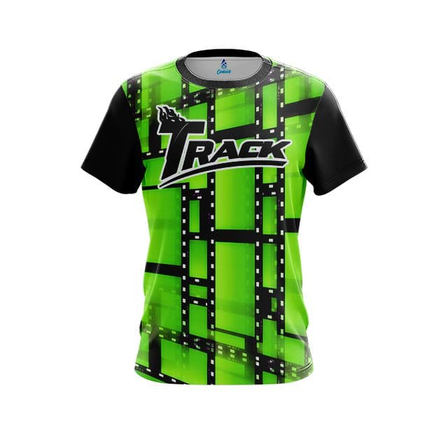 Stay 40% cooler with CoolWick. Our Track Movie Reel Green CoolWick Bowling Jersey. CoolWick Bowling Jerseys are made of two different fabrics with the back being our CoolWick technology fabric that helps wick moisture away and helps air flow more easily through the fibers.