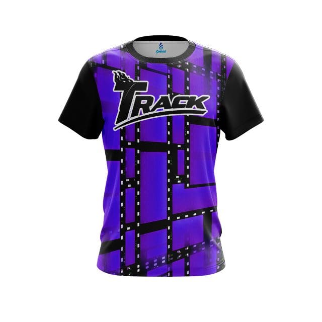 Stay 40% cooler with CoolWick. Our Track Movie Reel Purple CoolWick Bowling Jersey. CoolWick Bowling Jerseys are made of two different fabrics with the back being our CoolWick technology fabric that helps wick moisture away and helps air flow more easily through the fibers.