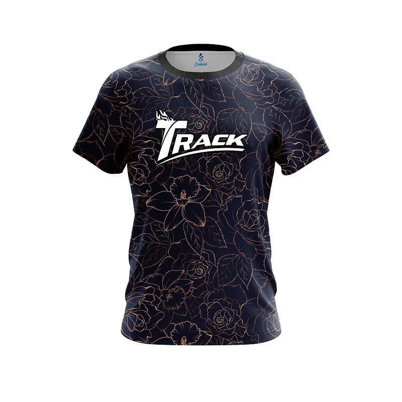 Stay 40% cooler with CoolWick. Our Track Navy rose gold CoolWick Bowling Jerseys are made of two different fabrics with the back being our CoolWick technology fabric that helps wick moisture away and helps air flow more easily through the fibers.