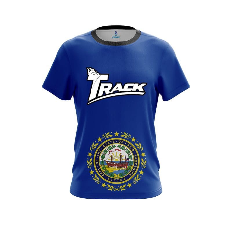 Stay 40% cooler with CoolWick. Our Track New Hampshire Flag CoolWick Bowling Jersey are made of two different fabrics with the back being our CoolWick technology fabric that helps wick moisture away and helps air flow more easily through the fibers.