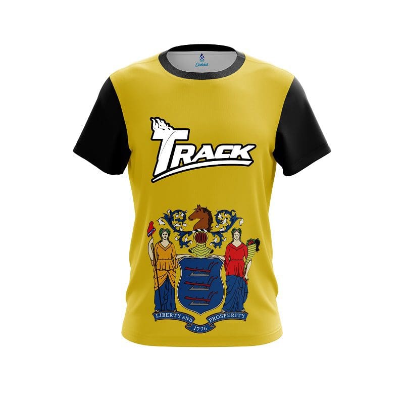 Stay 40% cooler with CoolWick. Our Track New Jersey Flag CoolWick Bowling Jersey are made of two different fabrics with the back being our CoolWick technology fabric that helps wick moisture away and helps air flow more easily through the fibers.