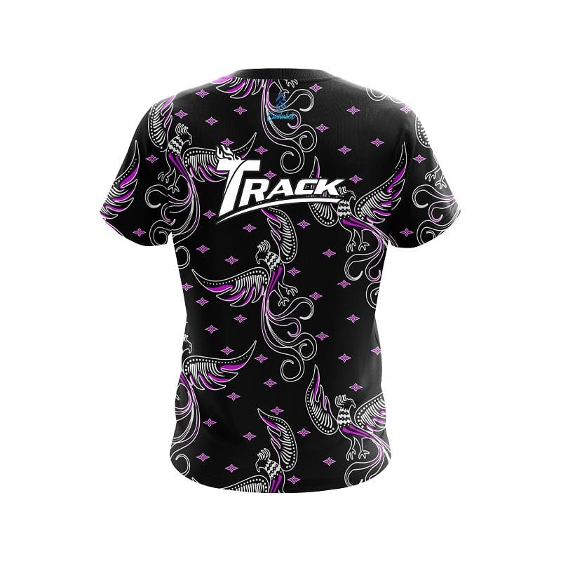Stay 40% cooler with CoolWick. Our Track Phoenix Break Purple CoolWick Bowling Jerseys are made of two different fabrics with the back being our CoolWick technology fabric that helps wick moisture away and helps air flow more easily through the fibers.