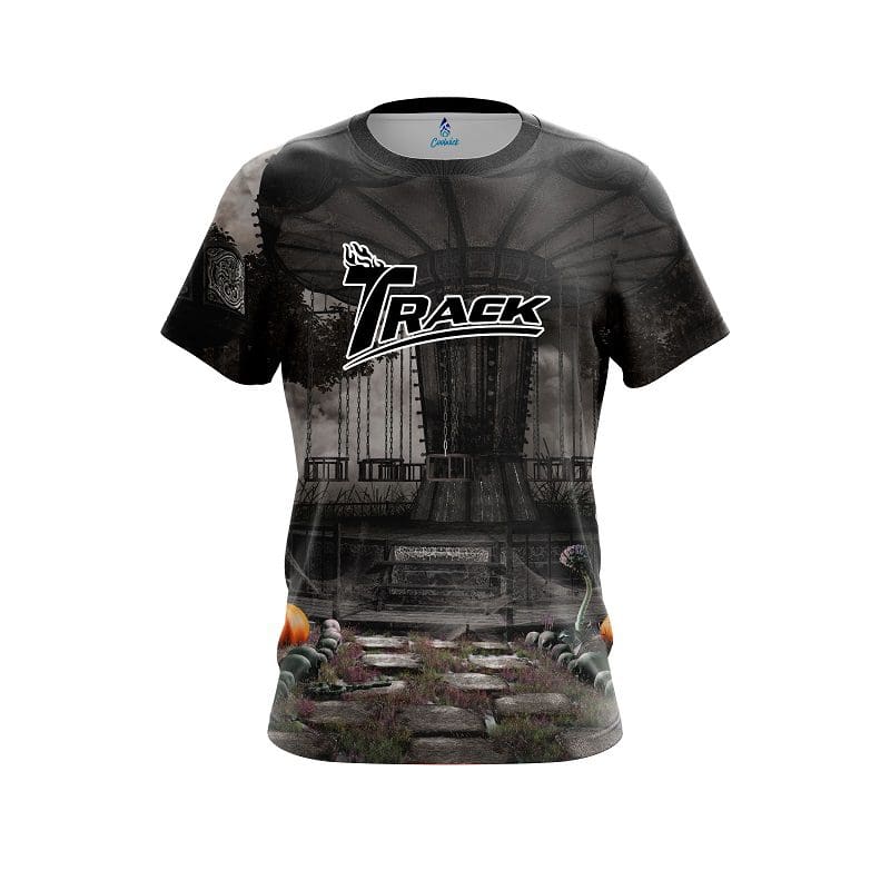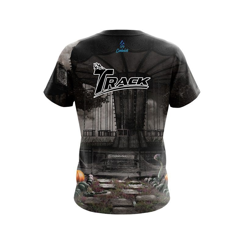 Stay 40% cooler with CoolWick. Our Track Spooky Carnival Carousel CoolWick Bowling Jerseys are made of two different fabrics with the back being our CoolWick technology fabric that helps wick moisture away and helps air flow more easily through the fibers.