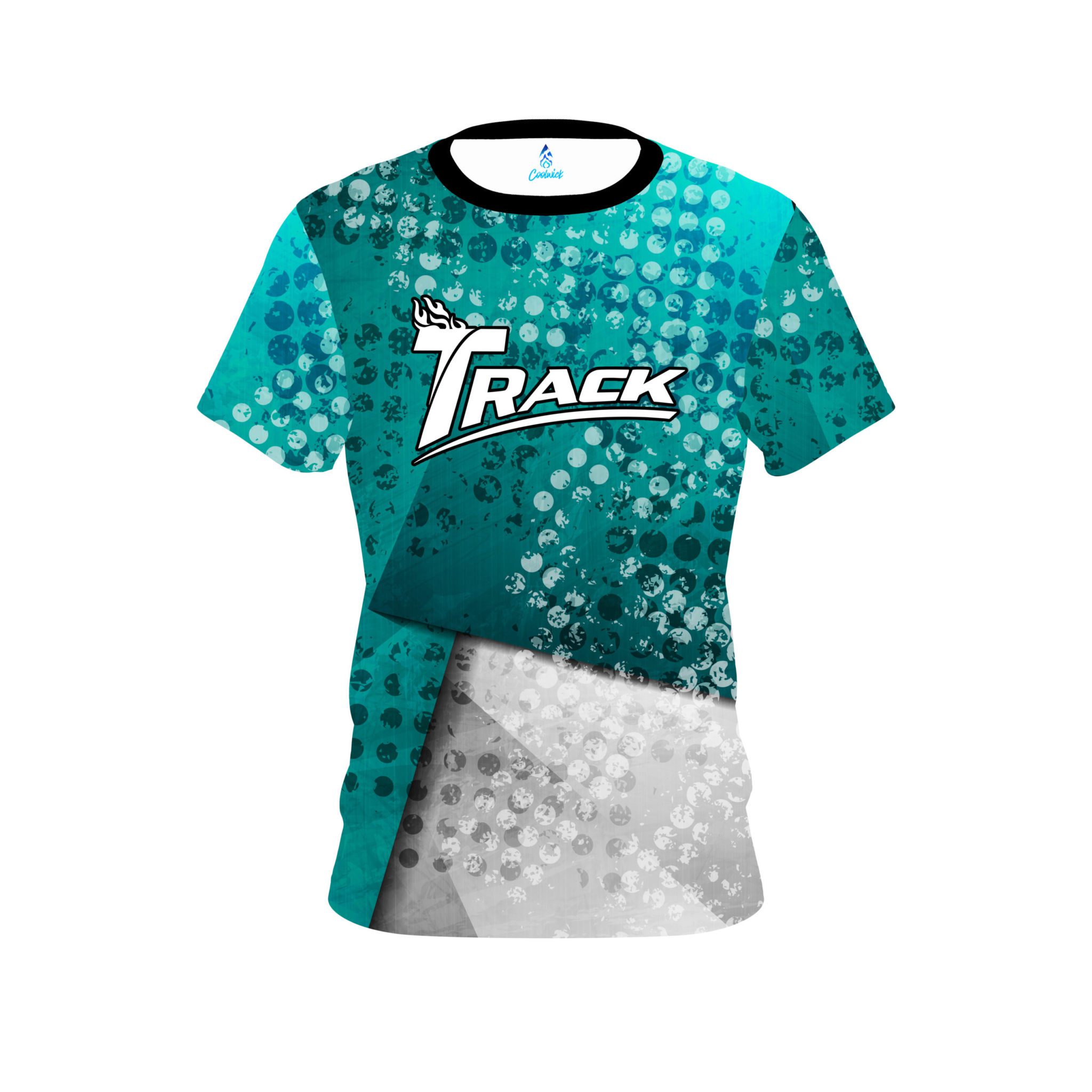 Stay 40% cooler with CoolWick. Our Track Teal Grungey CoolWick Bowling Jerseys are made of two different fabrics with the back being our CoolWick technology fabric that helps wick moisture away and helps air flow more easily through the fibers.
