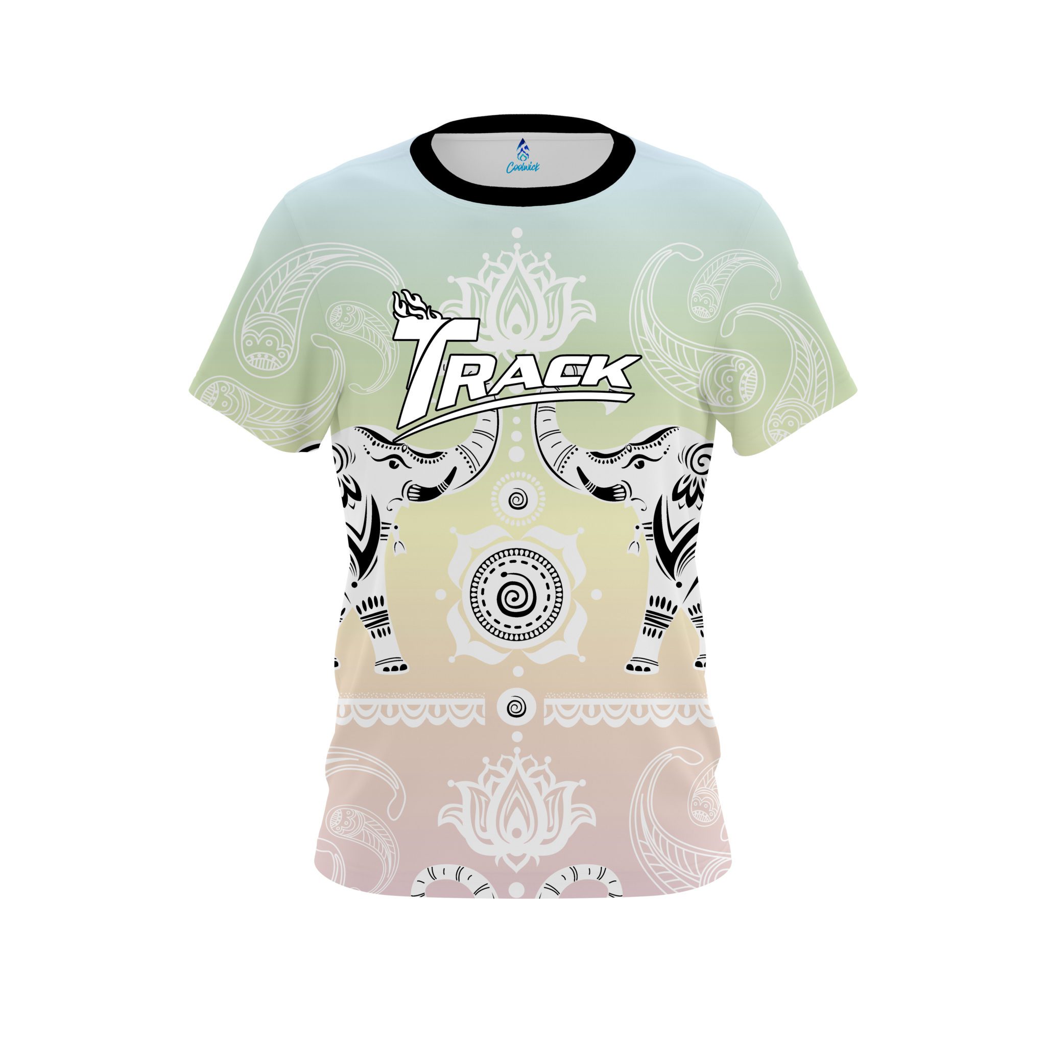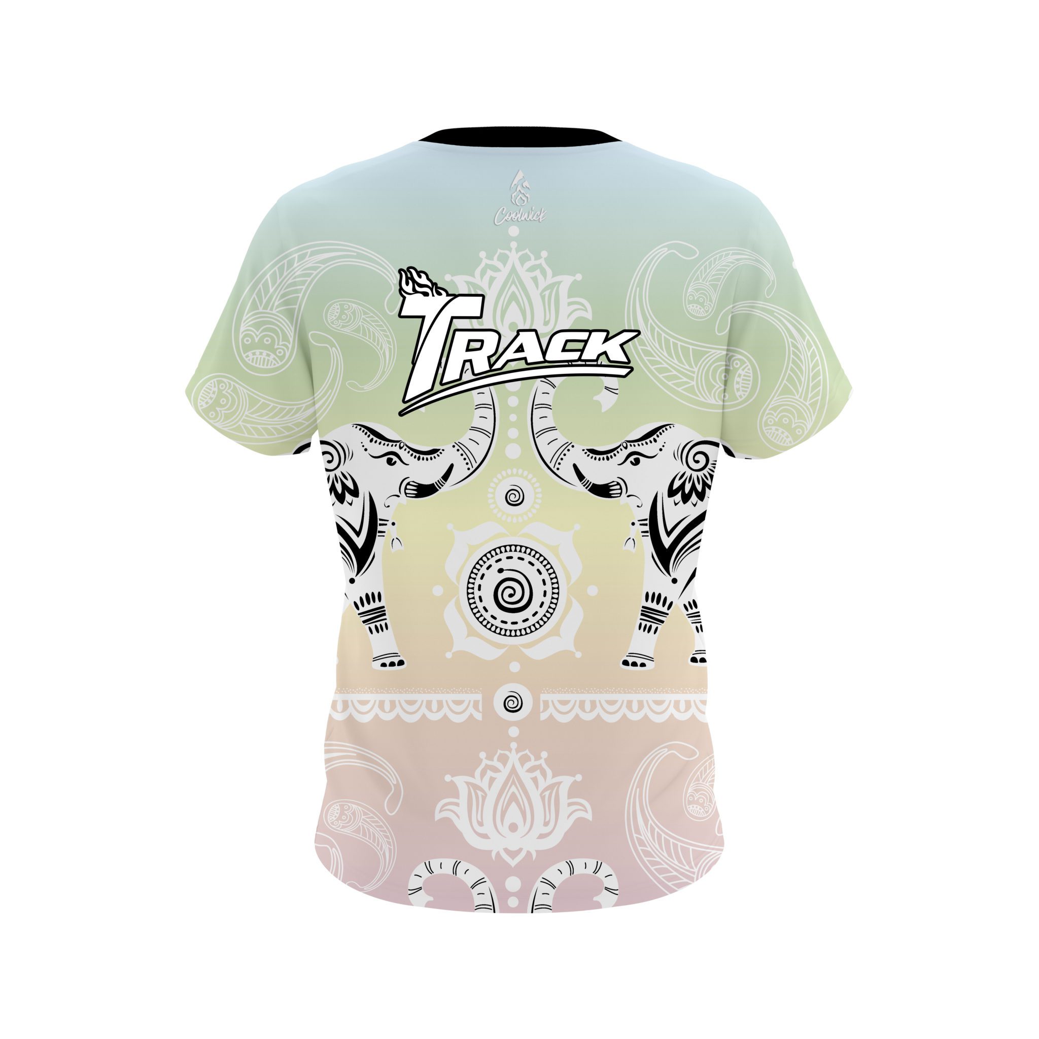 Stay 40% cooler with CoolWick. Our Track Tribal Elephants Pastel Rainbow CoolWick Bowling Jerseys are made of two different fabrics with the back being our CoolWick technology fabric that helps wick moisture away and helps air flow more easily through the fibers.