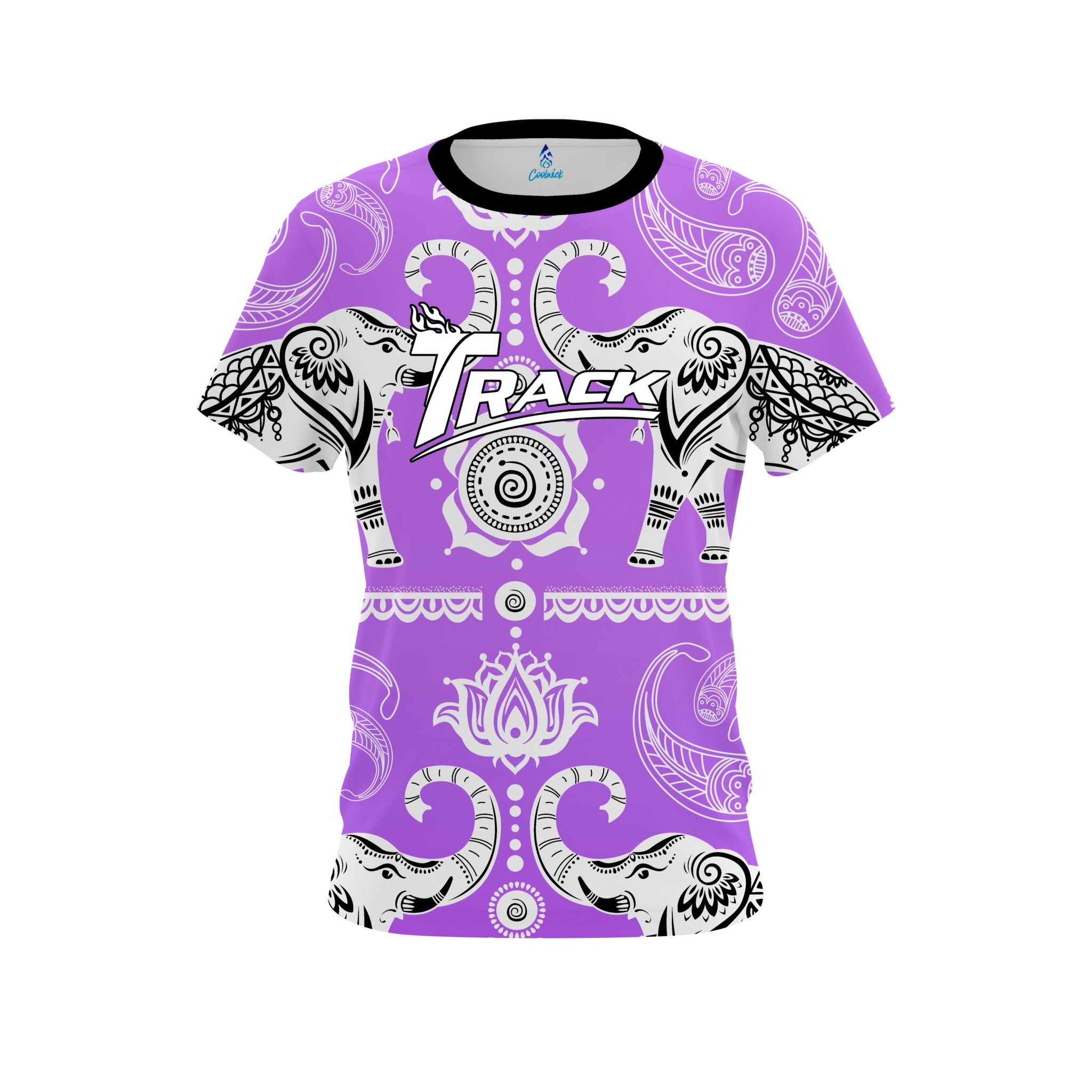 Stay 40% cooler with CoolWick. Our Track Tribal Elephants Purple CoolWick Bowling Jerseys are made of two different fabrics with the back being our CoolWick technology fabric that helps wick moisture away and helps air flow more easily through the fibers.