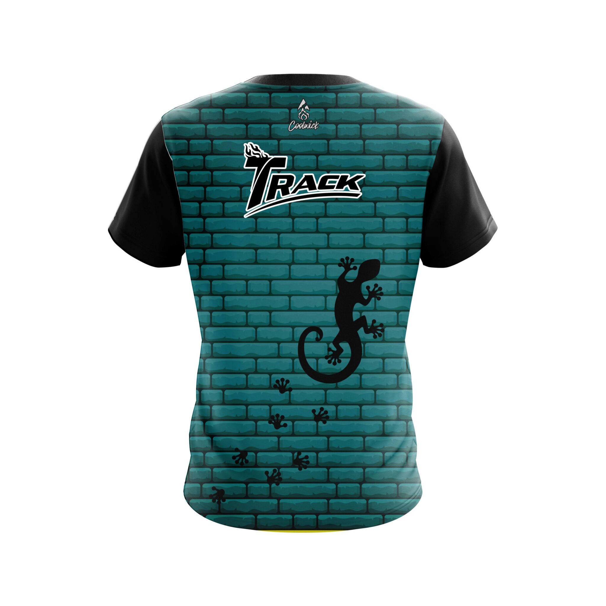 Stay 40% cooler with CoolWick. Our Track Turq Bricks Gecko CoolWick Bowling Jerseys are made of two different fabrics with the back being our CoolWick technology fabric that helps wick moisture away and helps air flow more easily through the fibers.