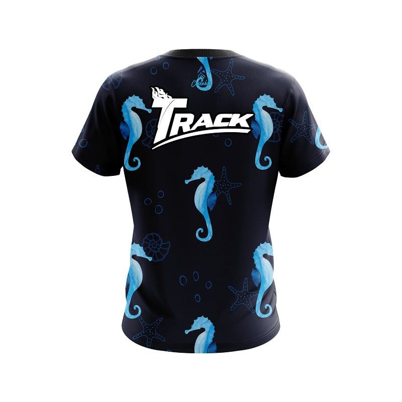 Stay 40% cooler with CoolWick. Our Track Underwater Seahorse CoolWick Bowling Jerseys are made of two different fabrics with the back being our CoolWick technology fabric that helps wick moisture away and helps air flow more easily through the fibers.