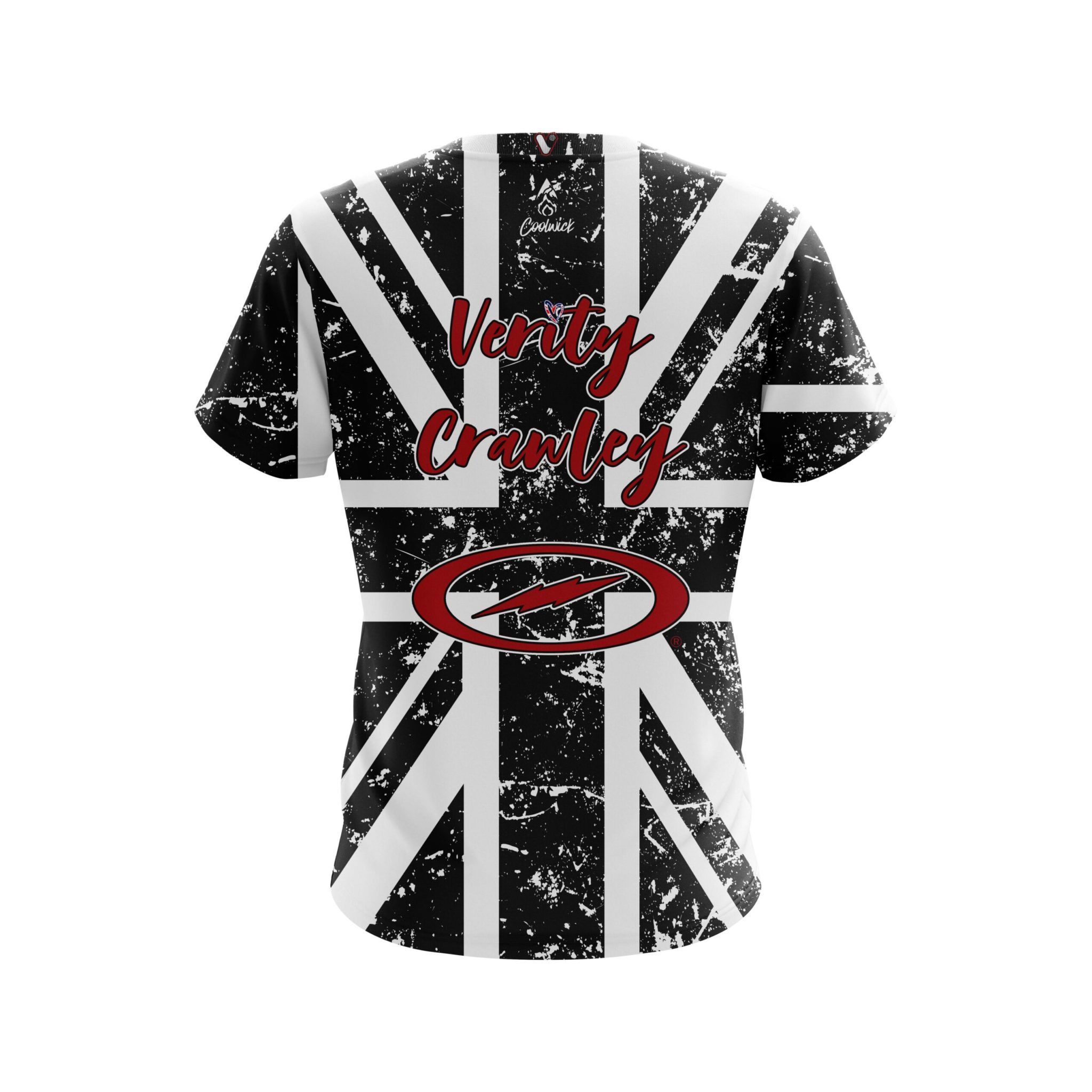 Stay 40% cooler with CoolWick. Our Verity Crawley Black White British Replica CoolWick Bowling Jersey CoolWick Bowling Jerseys are made of two different fabrics with the back being our CoolWick technology fabric that helps wick moisture away and helps air flow more easily through the fibers.