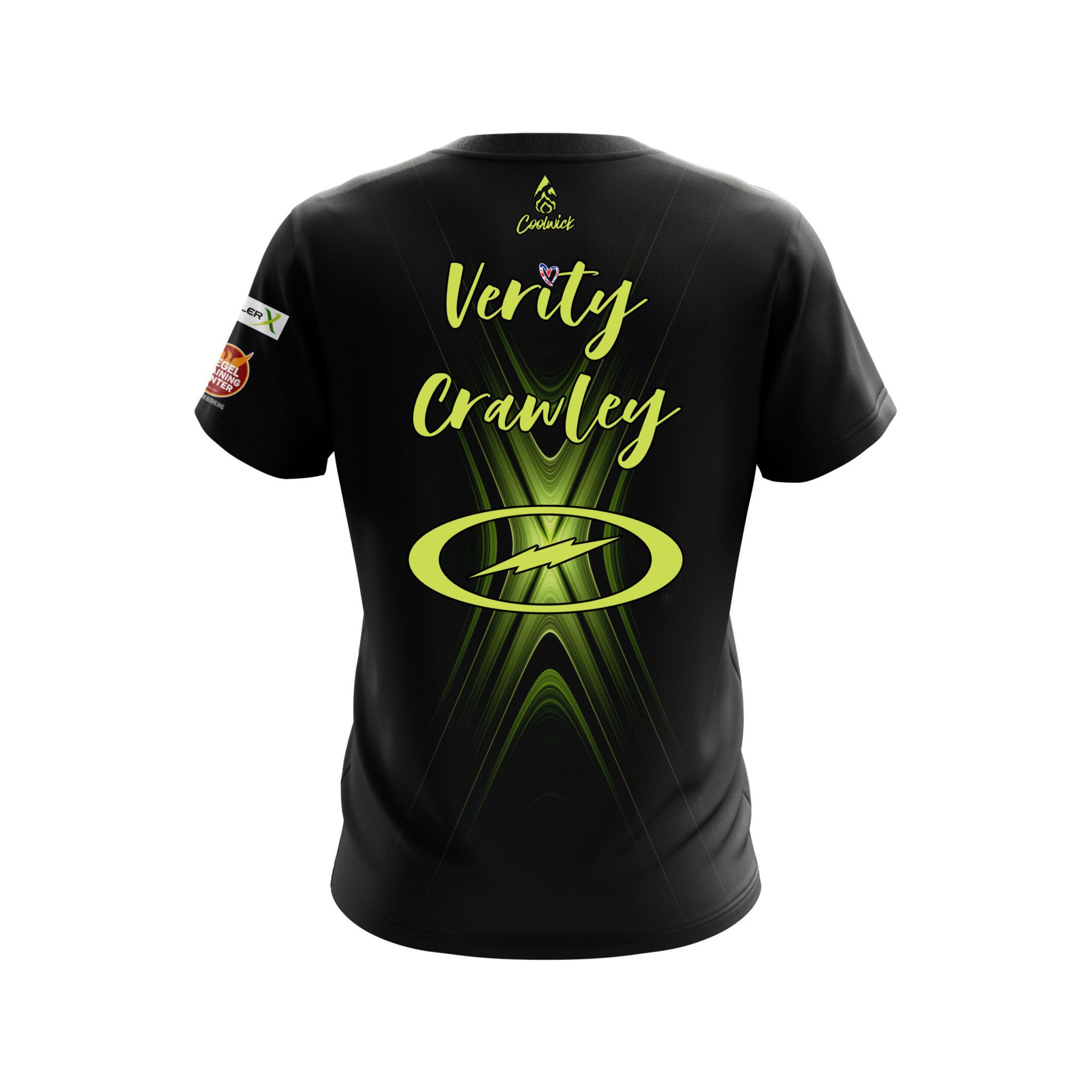 Stay 40% cooler with CoolWick. Our Verity Crawley X Replica CoolWick Bowling Jersey CoolWick Bowling Jerseys are made of two different fabrics with the back being our CoolWick technology fabric that helps wick moisture away and helps air flow more easily through the fibers.