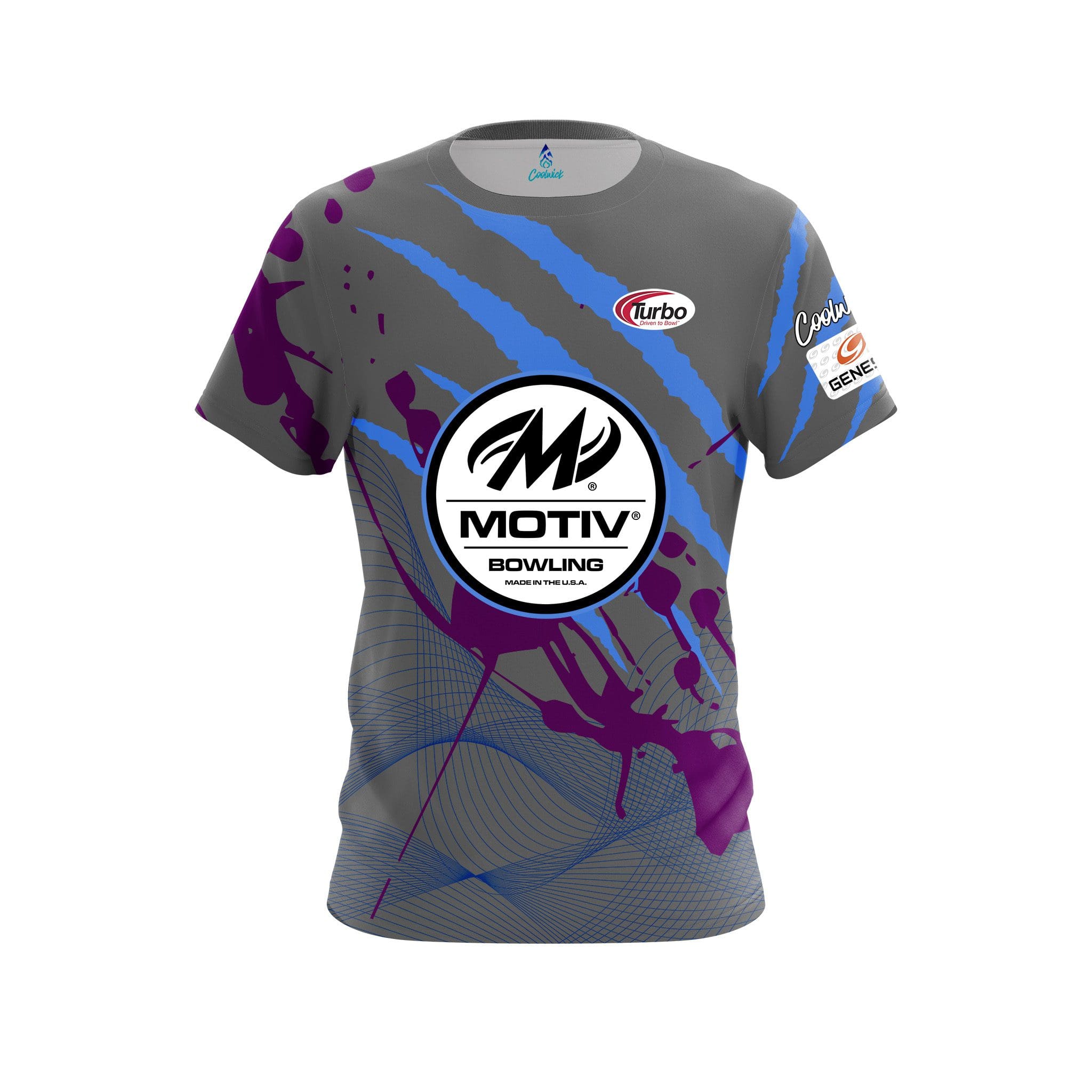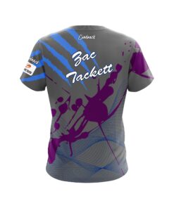 Stay 40% cooler with CoolWick. Our Zac Tackett Grey Blue Purple Sonic Claw CoolWick Bowling Jerseys are made of two different fabrics. The back being our CoolWick technology fabric that helps wick moisture away and helps air flow more easily through the fibers.