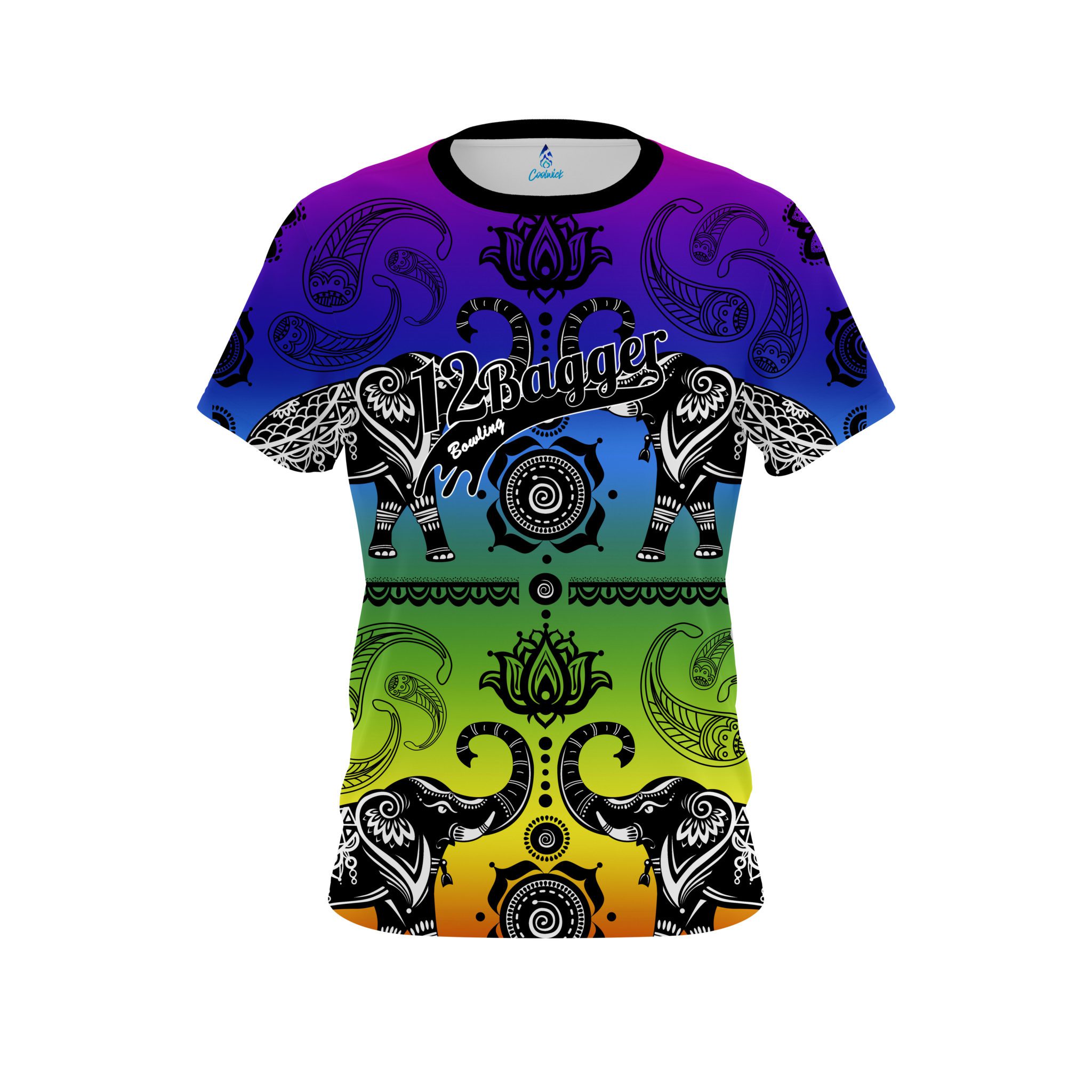 12Bagger Bowling Tribal Elephants Rainbow Coolwick Jersey
