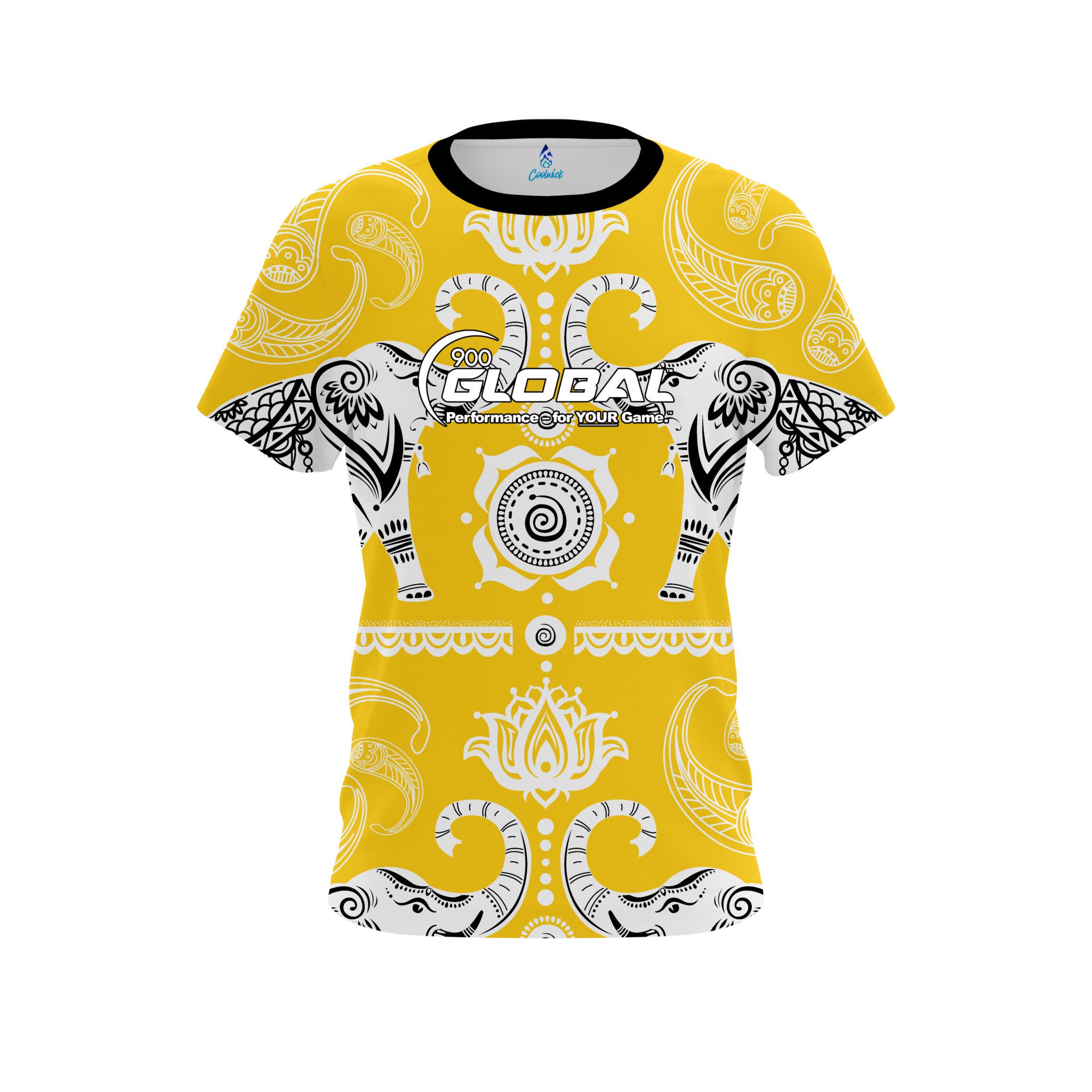 900 Global Tribal Elephants Yellow CoolWick Bowling Jersey