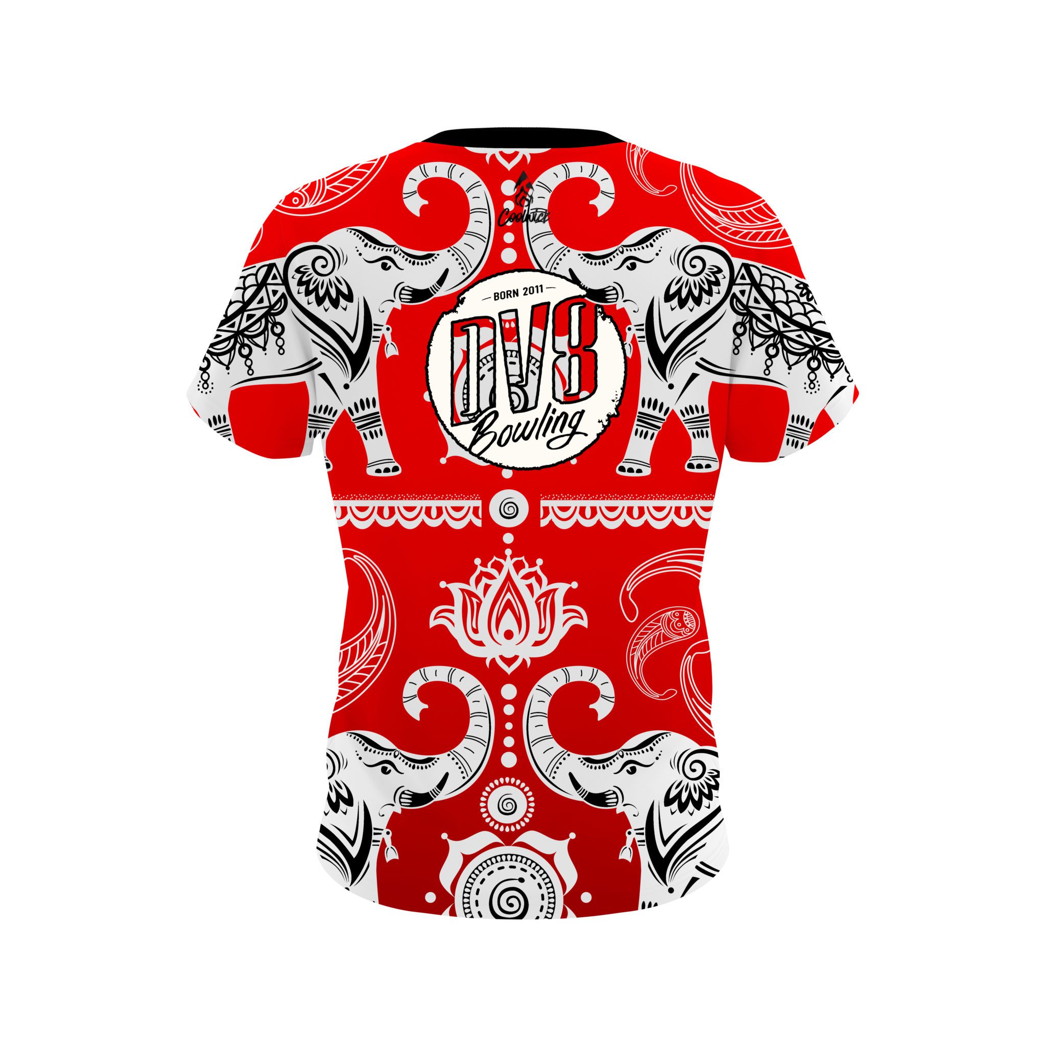 DV8 Tribal Elephants Red CoolWick Bowling Jersey